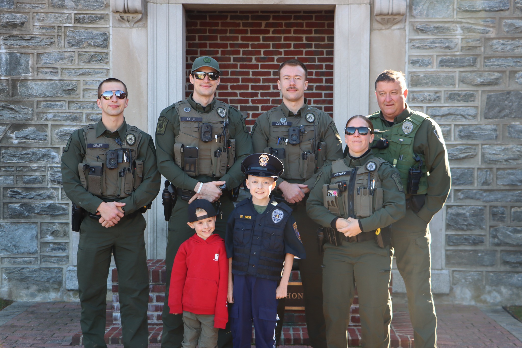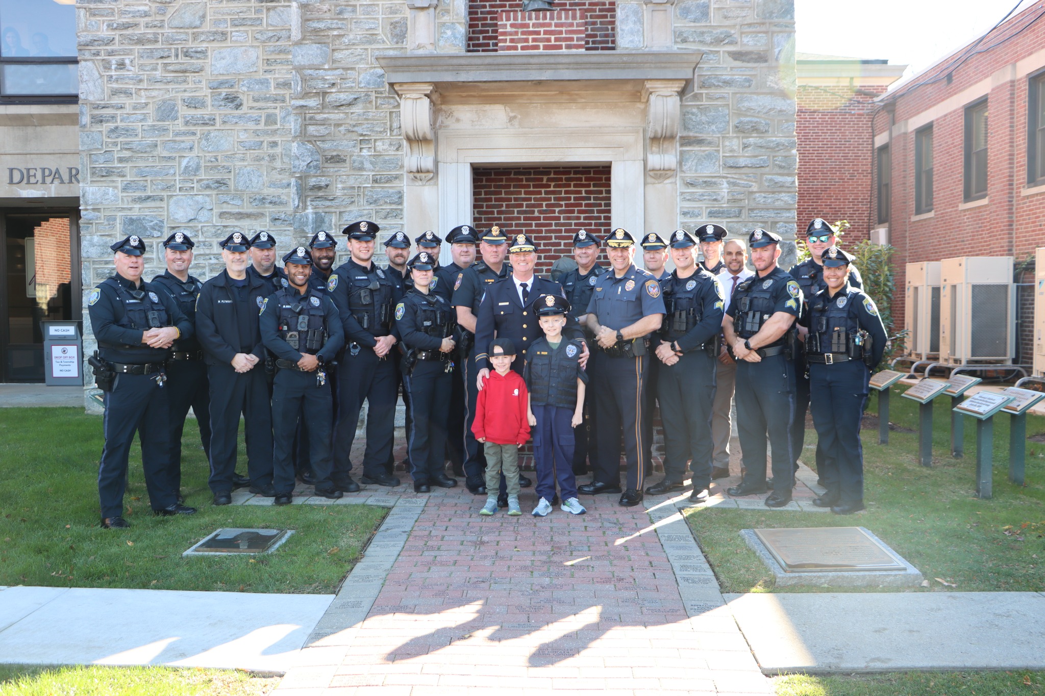 Police officers, K-9s, firefighters, medics, and even game wardens lined up outside the station to greet the new chief, who had a well-deserved day off from school to take on his big new role.