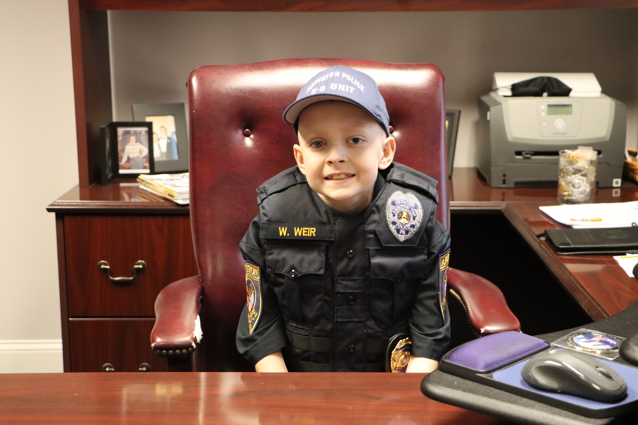 Eight-year-old William Weir, a third grader from Abington who is battling retinoblastoma, a rare form of eye cancer, was sworn in as Police Chief for a Day during a heartfelt ceremony that brought the community together in support and celebration.