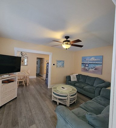 This first floor condo with central air provides everything for the perfect summer getaway! The living room and dining room feature brand-new hardwood floors and furniture. The well-equipped kitchen features a dishwasher, microwave, and coffee maker. The unit has a private outside shower and off-street parking for two cars.