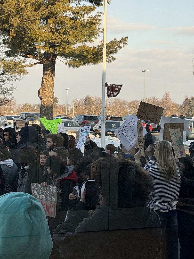 At Abington Senior High School, more than 100 students walked out of their classrooms at 7:45 a.m. to voice opposition to how ICE’s enforcement tactics are being carried out in Montgomery County and across the country. Many carried handmade signs expressing objections to the federal immigration crackdown that has intensified under President Donald Trump’s second term.